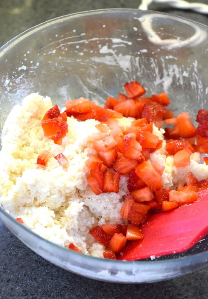 Instead of just the traditional coconut, I wanted to spice things up a bit by adding some chopped strawberries along with some delicious sugar free strawberry glaze.