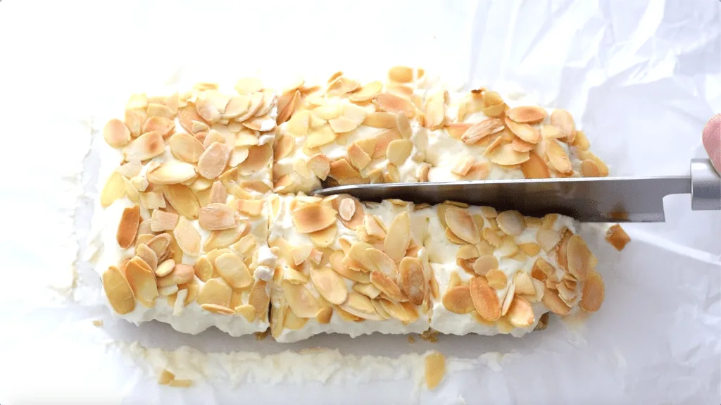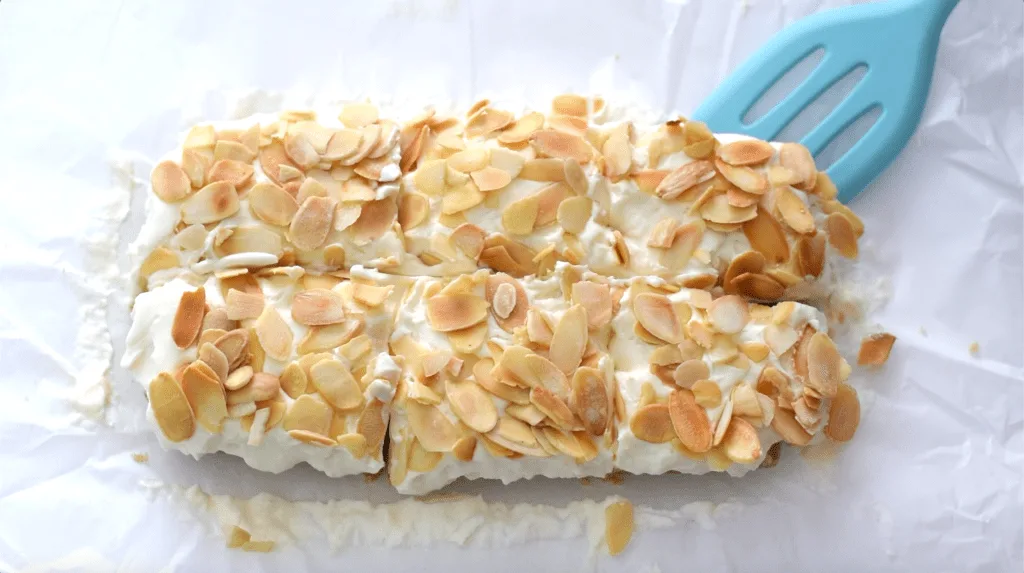 - Sprinkle the cheesecake with sliced almonds. To toast them, simply toss some onto a baking sheet and broil on high for a couple minutes (watch VERY closely, they can burn easily).