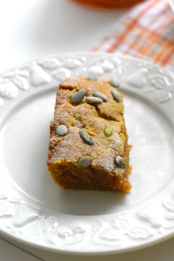 I topped off my cake with toasted pumpkin seeds but this keto pumpkin cake is also great served warm with some whipped cream or vanilla ice cream.